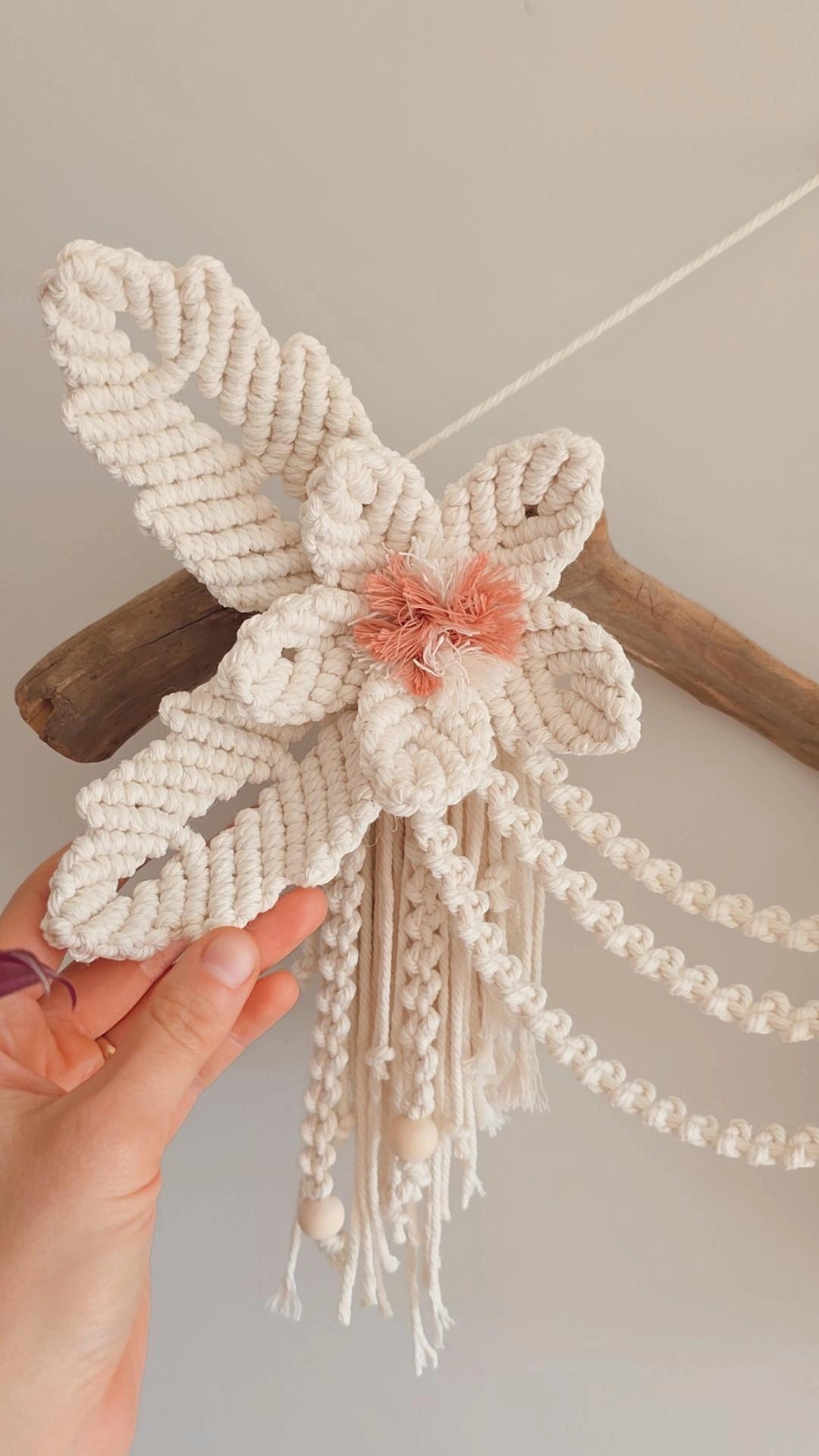 ☀️ Beautiful macrame flowers on an absolutely stunning piece of driftwood to brighten up your living space.